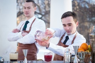 «The Traveling Bartenders» готовы раскрыть секреты мастерства на выездных мастер-классах. Бармены в формате шоу расскажут и покажут, как готовить уникальные авторские миксы. Эта идея отлично подходит для мероприятия любого формата – будь то свадьба или корпоратив.